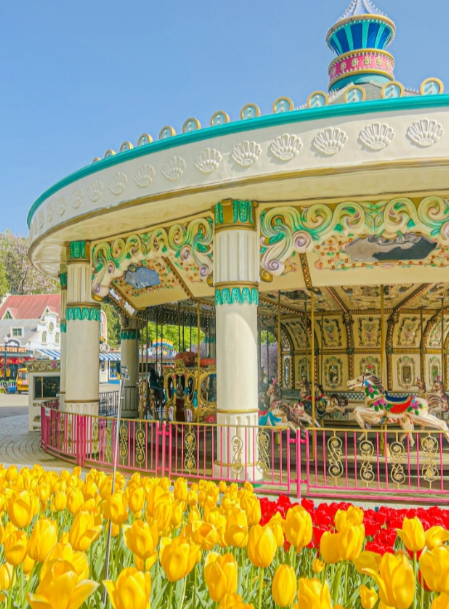 1천만 송이의 튤립을 볼 수 있으며 각종 놀이기구를 즐길 수 있습니다.